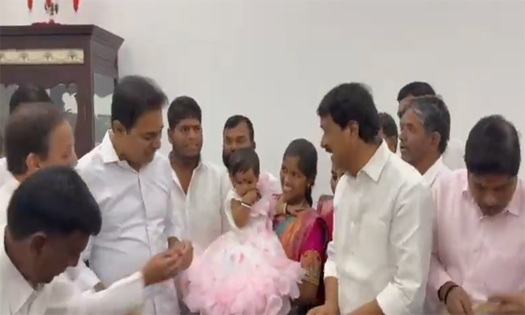 తెలంగాణ భవన్లో లగచర్ల భూ పోరాటానికి ప్రతీకగా నిలిచిన చిన్నారి భూమి నాయక్ మొదటి పుట్టినరోజు వేడుకలు ఘనంగా నిర్వహించారు. లగచర్లలో భూ సమస్యపై జరిగిన ఉద్యమ సమయంలో జన్మించిన లగచర్ల బాధితురాలు జ్యోతి కుమార్తెకు అప్పట్లో బీఆర్ఎస్ వర్కింగ్ ప్రెసిడెంట్ కేటీఆర్ “భూమి నాయక్” అని నామకరణం చేశారు. భూమి హక్కుల కోసం సాగిన పోరాటానికి గుర్తుగా, ఆ చిన్నారి పేరు ఉద్యమ భావాన్ని ప్రతిబింబించేలా పెట్టడం అప్పట్లో విస్తృత చర్చకు దారితీసింది.