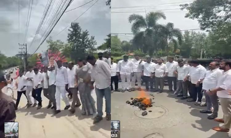 బీసీ రిజర్వేషన్లపై ప్రభుత్వ వైఖరిని నిరసిస్తూ కాంగ్రెస్ దిష్టిబొమ్మ దహనం చేశారు బీఆర్ఎస్ నేతలు. బీసీలకు న్యాయం చేయకుండా తప్పుడు విధానాలతో రిజర్వేషన్లను తొక్కుతున్న కాంగ్రెస్ ప్రభుత్వ వైఖరిని నిరసిస్తూ బంజారాహిల్స్ అగ్రసేన్ మహారాజ్ చౌరస్తా వద్ద బీఆర్ఎస్ నాయకులు కాంగ్రెస్ పార్టీ దిష్టిబొమ్మను దహనం చేశారు.