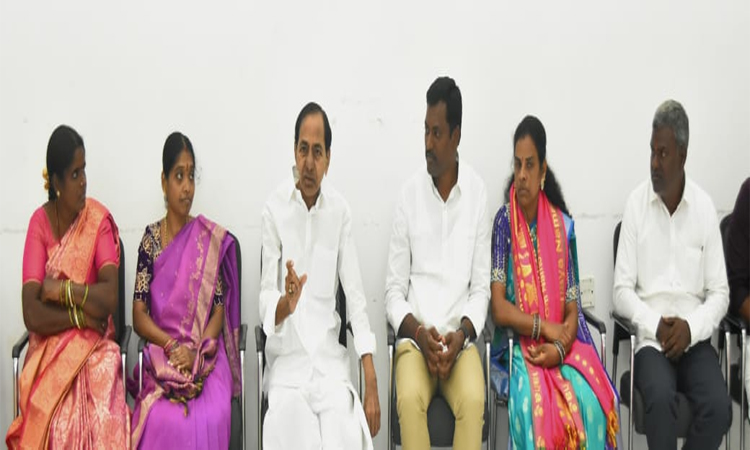 తెలంగాణ ముఖ్యమంత్రి గా తాను దత్తత తీసుకున్న , తన గజ్వేల్ నియోజక వర్గ పరిధిలోని, ఎర్రవెల్లి, నర్సన్నపేట గ్రామాల నూతన సర్పంచులు.. వార్డు మెంబర్లు శుక్రవారం కేసీఆర్ గారిని మర్యాద పూర్వకంగా కలిసి ఆశీర్వాదం తీసుకున్నారు.వారిని తన నివాసానికి సాదరంగా ఆహ్వానించి, గ్రామస్థుల సమష్టి మద్దతుతో ఎన్నికైన సర్పంచులను శాలువాలతో సత్కరించిన కేసీఆర్ వారికి మిఠాయిలు పంచారు. సందర్భంగా తన వద్దకు వచ్చిన గ్రామస్థులను, గుర్తుపట్టి పేరు పేరునా పలకరించి, వారి యోగ క్షేమాలను అడిగి తెలుసుకున్నారు. గ్రామాల్లో వాతావరణం, మౌలిక వసతుల అందుబాటు, పండుతున్న పంటల పరిస్థితి గురించి పేరు పేరునా అడిగి కేసీఆర్ గారు తెలుసుకున్నారు.