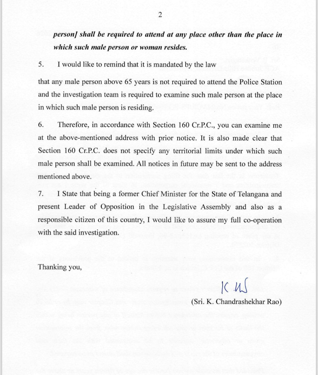 అయితే, చట్టానికి గౌరవం ఉందని, దర్యాప్తుకు పూర్తిస్థాయిలో సహకరించేందుకు సిద్ధంగా ఉన్నానని కేసీఆర్ పేర్కొన్నారు. విచారణకు హాజరవ్వడానికి సిట్ అధికారులకు అనువుగా ఉండే మరో తేదీని సూచించాలని ఆయన కోరారు. మున్సిపల్ ఎన్నికల ప్రక్రియ పూర్తైన అనంతరం సిట్ విచారణకు హాజరై అవసరమైన సమాచారం అందిస్తానని హామీ ఇచ్చారు.