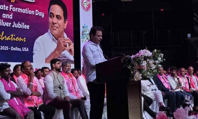 అమెరికాలోని డాలస్‌ నగరంలోని డాక్టర్‌ పెప్పర్‌ ఎరీనాలో రాష్ట్ర ఆవిర్భావ సంబురాలు బీఆర్‌ఎస్‌ రజతోత్సవాలు ఘనంగా నిర్వహించారు. ఈ సందర్భంగా మాట్లాడిన కేటీఆర్…తెలంగాణను ప్రేమించడంలో ఎప్పుడూ ముందున్నామని తెలిపారు. మిమ్మల్ని చూసి తెలంగాణ గడ్డ గర్విస్తున్నది. ఖండాలను దాటి తెలంగాణ నైపుణ్యాన్ని చాటిన మీ అందరికీ వందనం. తెలంగాణకు ప్రతీకగా నిలిచిన మీ అందరికీ అభివందనం. అమెరికాలోని తెలంగాణవాసులను చూసి తెలంగాణ తల్లి గర్విస్తున్నది. పుట్టిన గడ్డకు వేలాది మైళ్ల దూరంలో ఉన్నా బతుకమ్మను మరచిపోలేదు. బతుకును ఇచ్చిన తెలంగాణను మీరు మరచిపోలేదు అన్నారు.