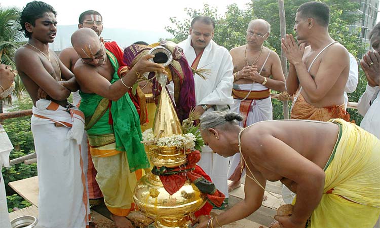 సాయంత్రం 5.30 గంటలకు ఆలయంలో విష్వక్సేనారాధన, పుణ్యహవచనం, వాస్తు హోమం, పంచగవ్య ప్రోక్షణము, ధ్వజ కుంభారాధనములు, మృత్సంగ్రహణము, అంకురార్పణం నిర్వహించారు. ఆలయ విమాన గోపురానికి రూ. 43 లక్షలతో నూతనంగా తయారు చేసిన స్వర్ణ కళశానికి యాగశాలలో శాస్త్రోక్తంగా పూజలు నిర్వహించారు.