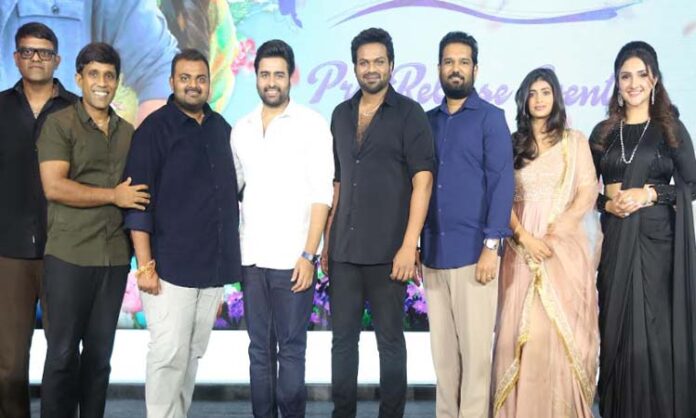 హీరో నారా రోహిత్ మైల్ స్టోన్ 20వ మూవీ ‘సుందరకాండ’. నూతన దర్శకుడు వెంకటేష్ నిమ్మలపూడి దర్శకత్వం వహిస్తున్నారు. సందీప్ పిక్చర్ ప్యాలెస్ (SPP) బ్యానర్‌పై సంతోష్ చిన్నపొల్ల, గౌతమ్ రెడ్డి, రాకేష్ మహంకాళి నిర్మిస్తున్నారు. వృతి వాఘాని, శ్రీ దేవి విజయ్ కుమార్ హీరోయిన్స్ గా నటిస్తున్నారు. టీజర్, పాటలు, ట్రైలర్ స్ట్రాంగ్ బజ్‌ను క్రియేట్ చేశాయి. ఈ సినిమా ఆగస్టు 27న విడుదల కానుంది. ఈ సందర్భంగా మేకర్స్ గ్రాండ్ గా ప్రీరిలీజ్ ఈవెంట్ నిర్వహించారు.