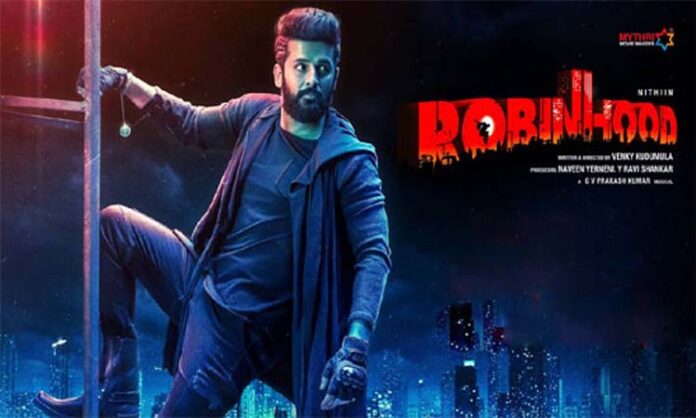 వెంకీ కుడుముల దర్శకత్వంలో నితిన్ హీరోగా తెరకెక్కిన చిత్రం రాబిన్ హుడ్. మైత్రి మూవీ మేకర్స్ బ్యానర్పై నవీన్ ఎర్నేని, వై.రవిశంకర్ ఈ సినిమాను నిర్మిస్తున్నారు. ఈ సినిమాకు జీవీ ప్రకాశ్ కుమార్ మ్యూజిక్ అందిస్తుండగా మార్చి 28న సినిమా ప్రేక్షకుల ముందుకువచ్చింది.
