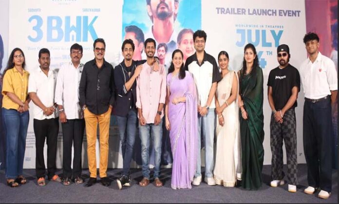 హీరో సిద్ధార్థ్ 40వ మూవీ ‘3 BHK’. శ్రీ గణేష్ దర్శకత్వం వహించారు. పోస్టర్లు, టీజర్లు, పాటలతో సినిమా మంచి బజ్ క్రియేట్ చేసింది. ప్రముఖ నటుడు శరత్ కుమార్ కీలక పాత్ర పోషిస్తుండగా, దేవయాని, యోగి బాబు, మీతా రఘునాథ్, చైత్ర కీలక పాత్రల్లో కనిపించనున్నారు. శాంతి టాకీస్ బ్యానర్‌పై అరుణ్ విశ్వ నిర్మించిన ఈ చిత్రం థియేట్రికల్ ట్రైలర్ ఈరోజు విడుదలైంది.
