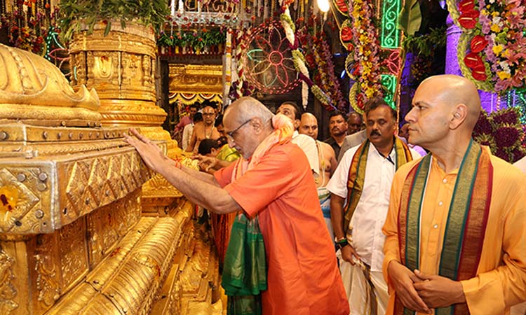 అనంతరం ఆలయానికి వెళ్లి ధ్వజస్తంభానికి నమస్కరించుకుని శ్రీవారిని దర్శించుకున్నారు. వకుళామాత, విమాన వేంకటేశ్వరస్వామి, భాష్యకార్ల సన్నిధి, యోగ నరసింహస్వామివారిని దర్శించుకున్నారు.